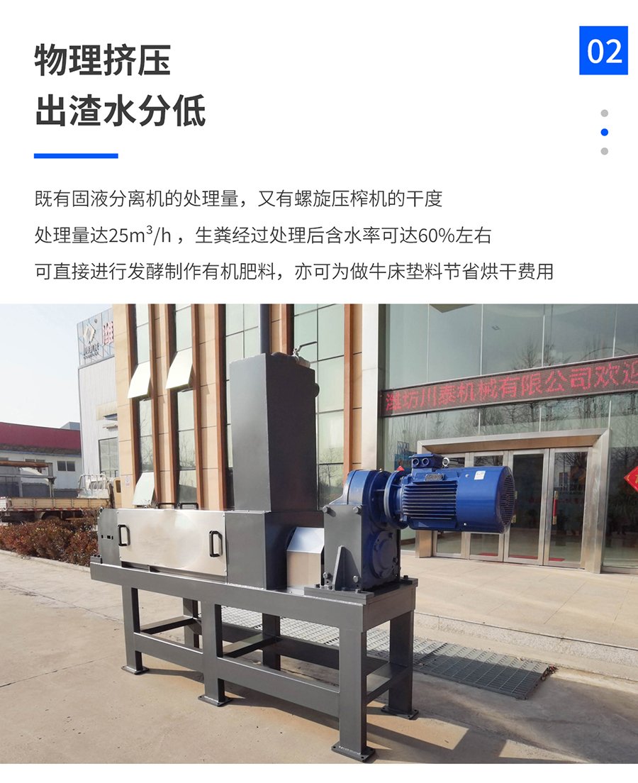 ?固液分離?:經過預處理的牛糞進入處理機主體后,會經歷固液分離的過程。這一過程可能基于機械擠壓、旋轉篩網等多種原理,旨在將牛糞中的固體和液體成分有效分離。